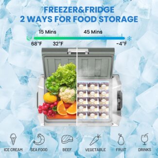 Alpicool IR42 Portable Fridge 12 Volt Car Refrigerator 42 Quart Fast Cooling Freezer for Fishing, Camping, RV, Truck, Boat-12/24V DC(Black &Grey)