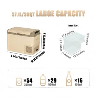 Alpicool 39 Quart GE40 Portable Car Refrigerator,12 Volt Car Freezer, Fast Cooling Fridge, with 1224V DC and 100-240V AC for Outdoor, Camping, RV, Truck
