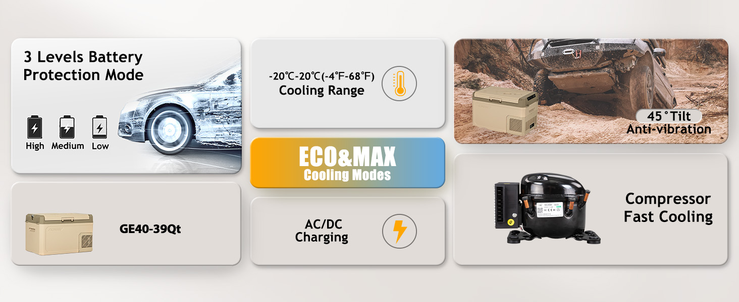 Alpicool 39 Quart GE40 Portable Car Refrigerator,12 Volt Car Freezer, Fast Cooling Fridge, with 1224V DC and 100-240V AC for Outdoor, Camping, RV, Truck