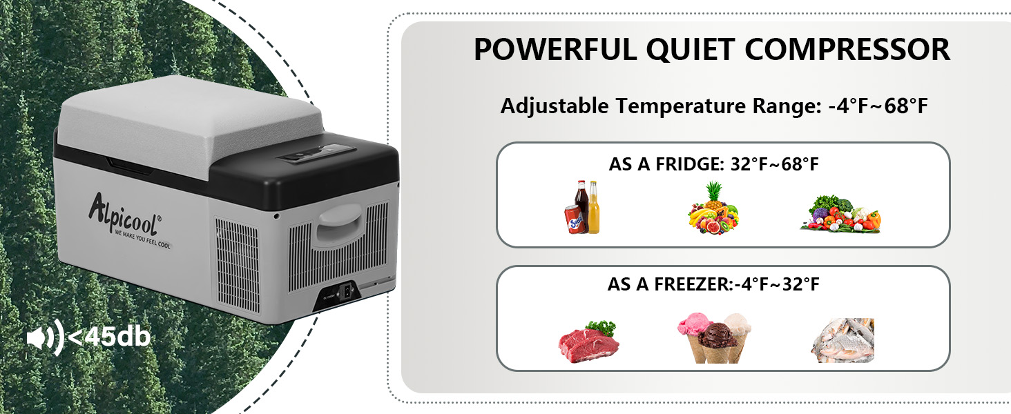 - ❄ FREEZES WITHOUT ICE: -4°F(-20°C) deep chilling down performance ,can be a fridge and freezer.Run great with your small solar system as well.