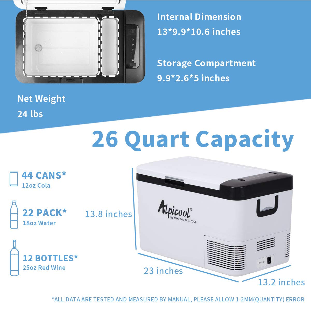 Alpicool K25 Portable 26 Quart Car RefrigeratorFreezer, 1224V DC & 100-240V AC, -4F68F, 60W