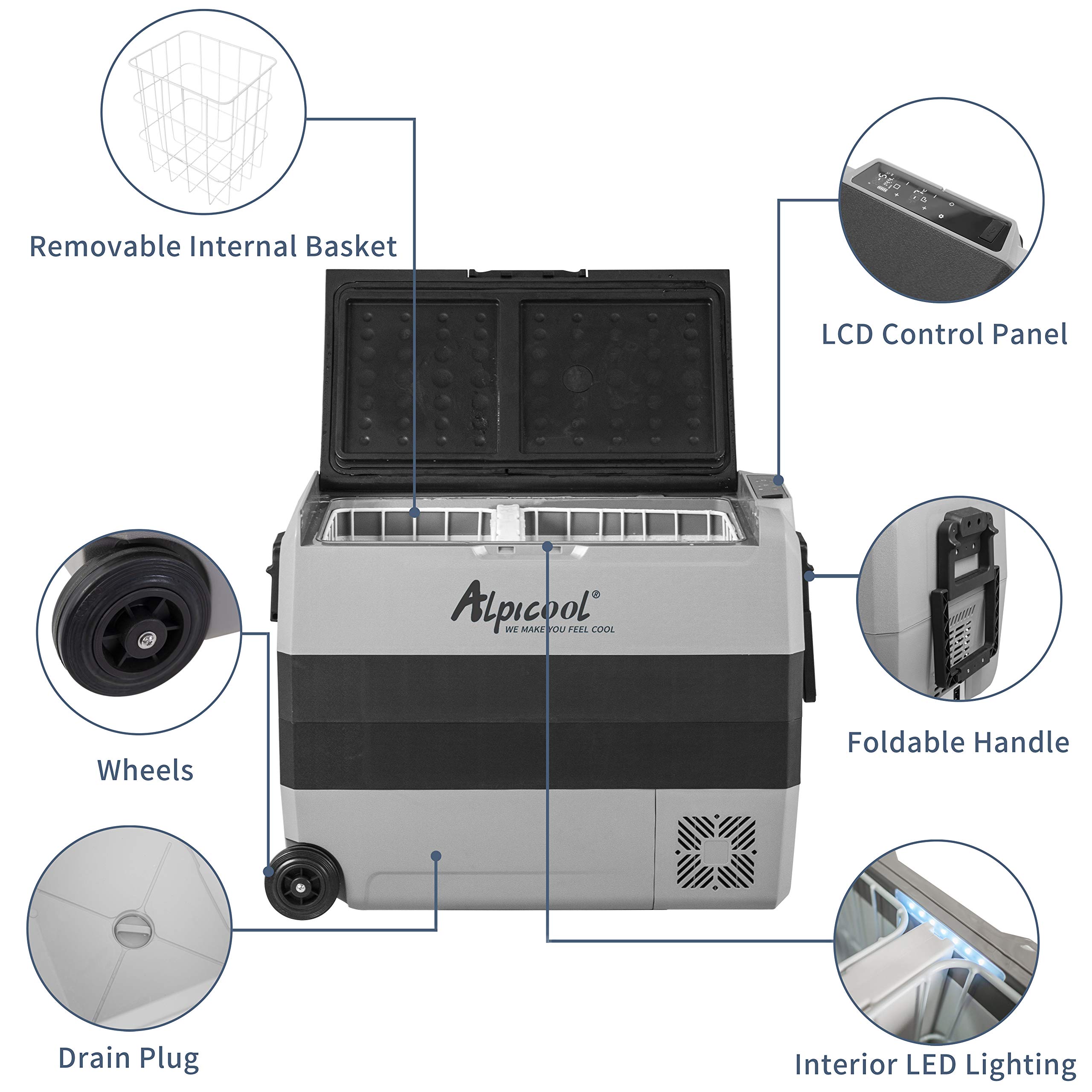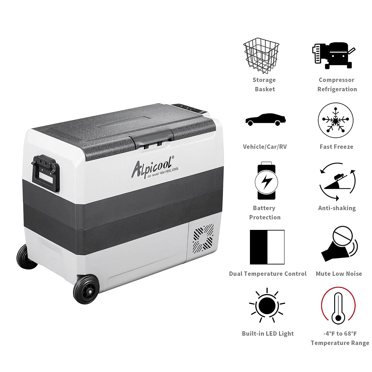 Alpicool T60 Dual Temperature Control 12 Volt Refrigerator 63 Quart Portable Car Fridge Freezer (-4°F~68°F) for Truck, RV, Boat, Camping and Travel