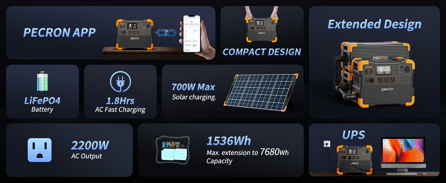 pecron E1500LFP 2200W Solar Generator with 200W Panel Included Portable Power Station with 200W Solar Panel