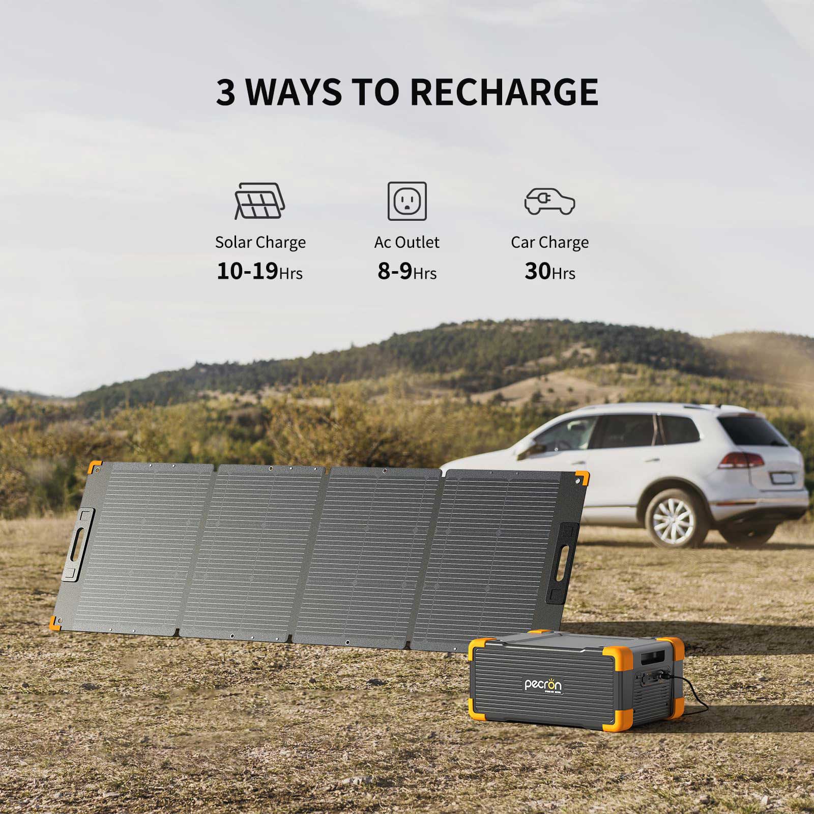 - INDEPENDENT CHARGING CAPABILITIES: pecron EP3000-48V can be charged independently from the solar panels, AC, and Car. (Connect with E1500LFP/E3600LFP for faster charging speed).