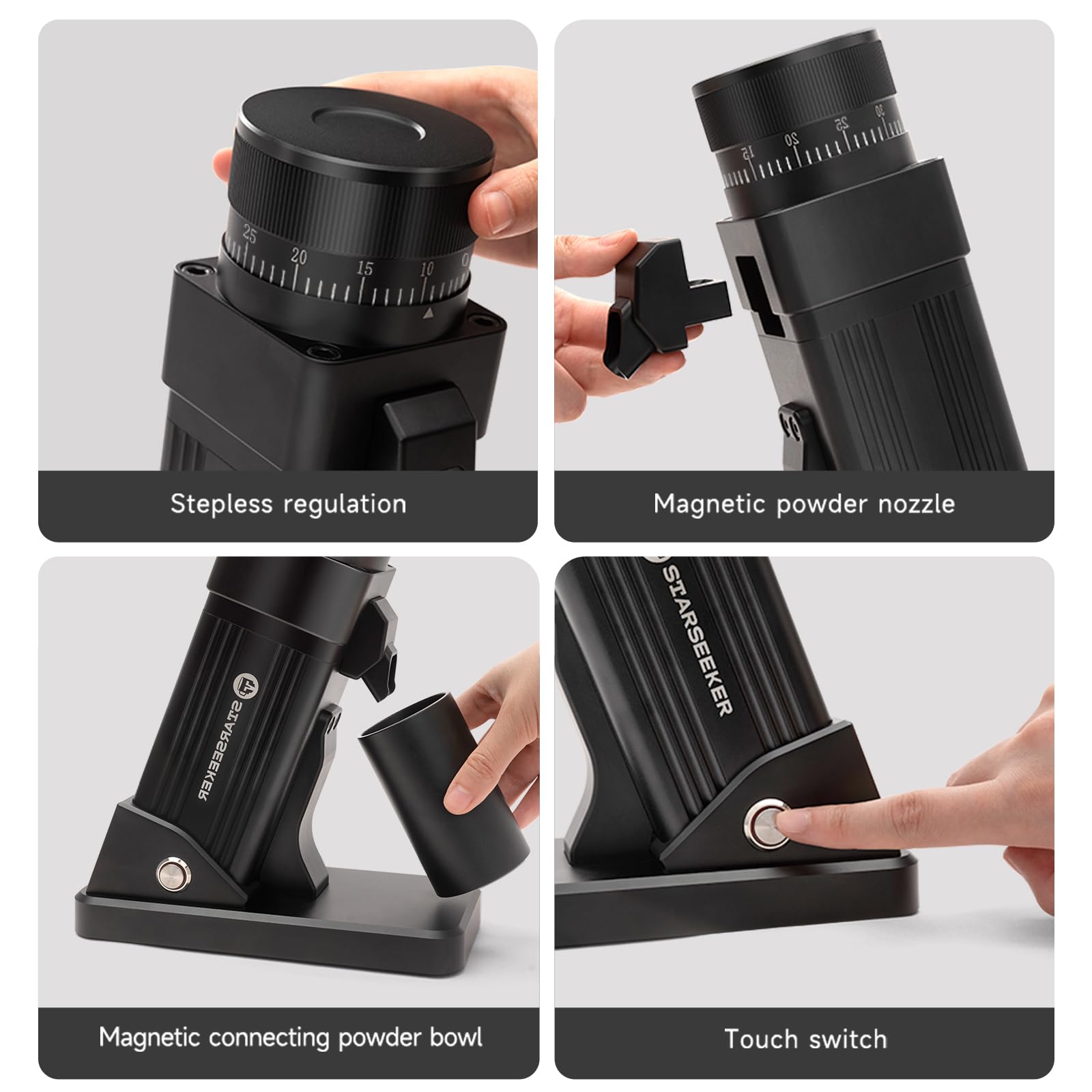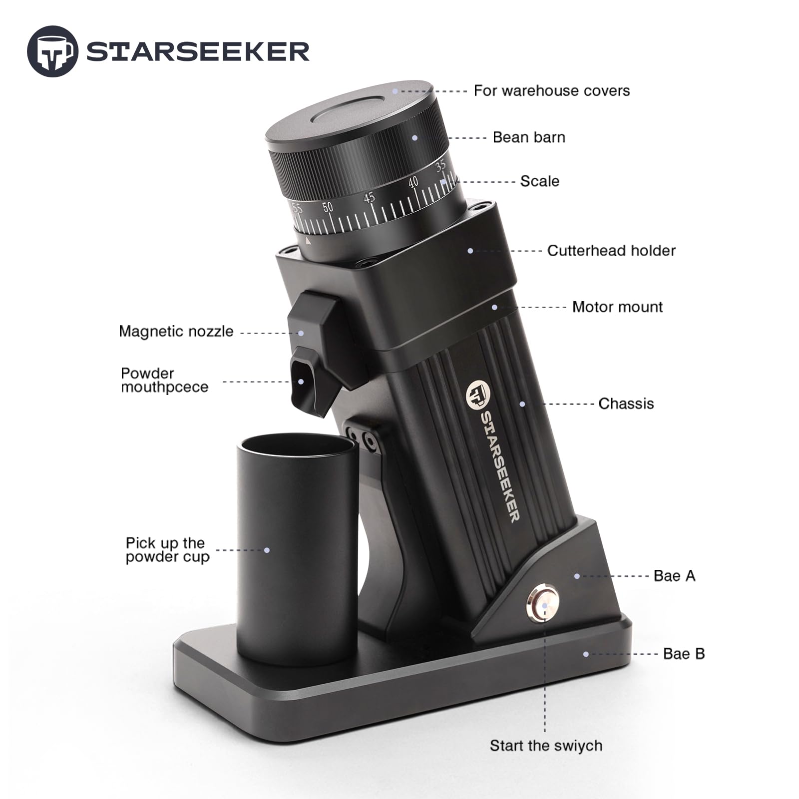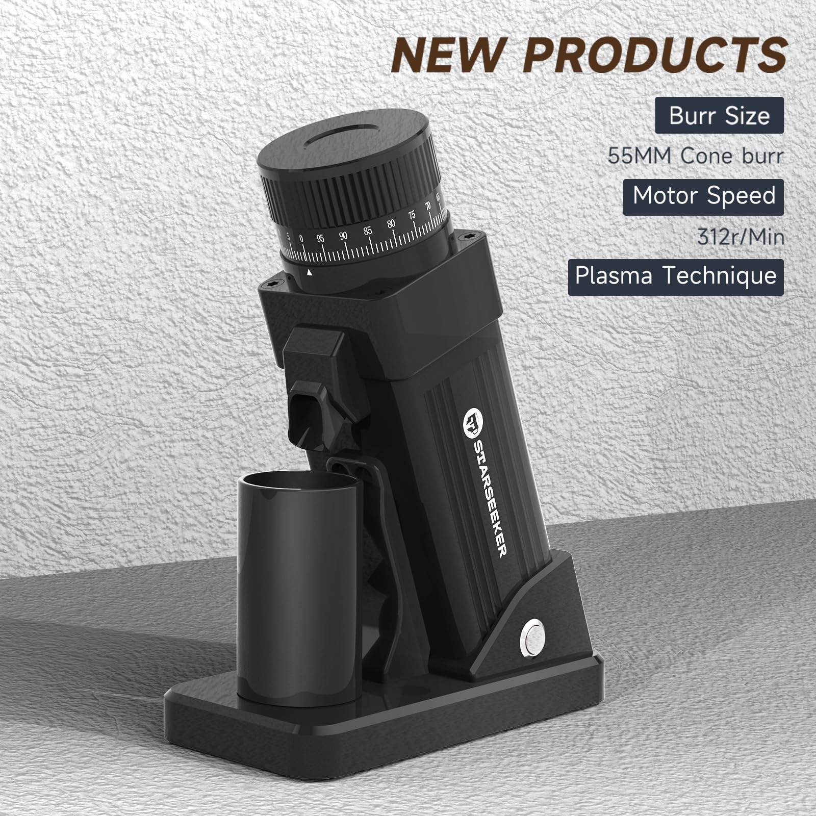 STARSEEKER E55 Plasma Electric Coffee Grinder – Single Dose, 55mm Cone Burr, 60 Settings for Espresso/Drip/French Press/Cold Brew, Aluminum Housing