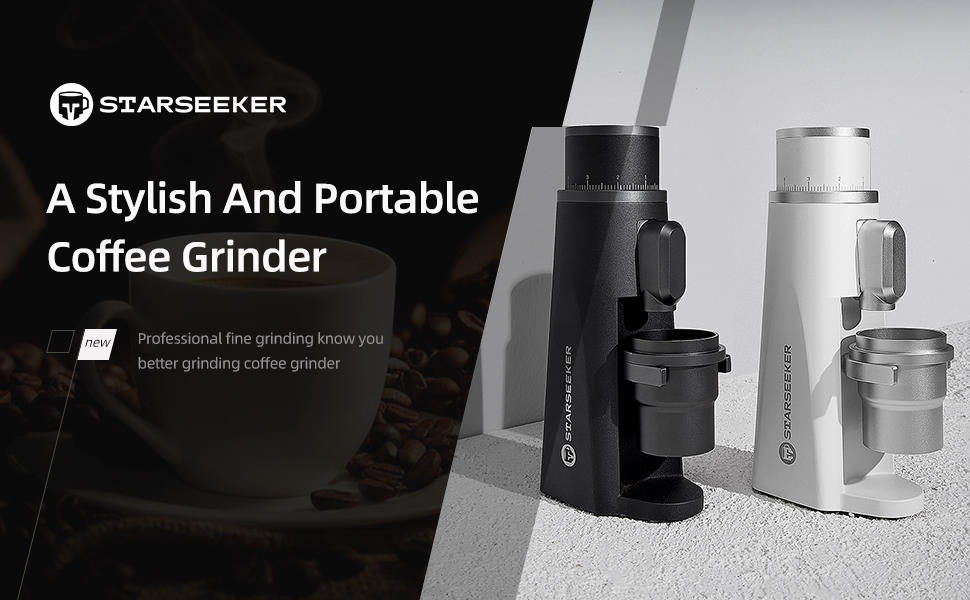 STARSEEKER EDGE Plasma Electric Coffee Grinder Aluminum Automatic Coffee Bean Grinder for French Press Drip Coffee and Espresso Removable Fineness Adjustment Magnetic Suction Port with Cup