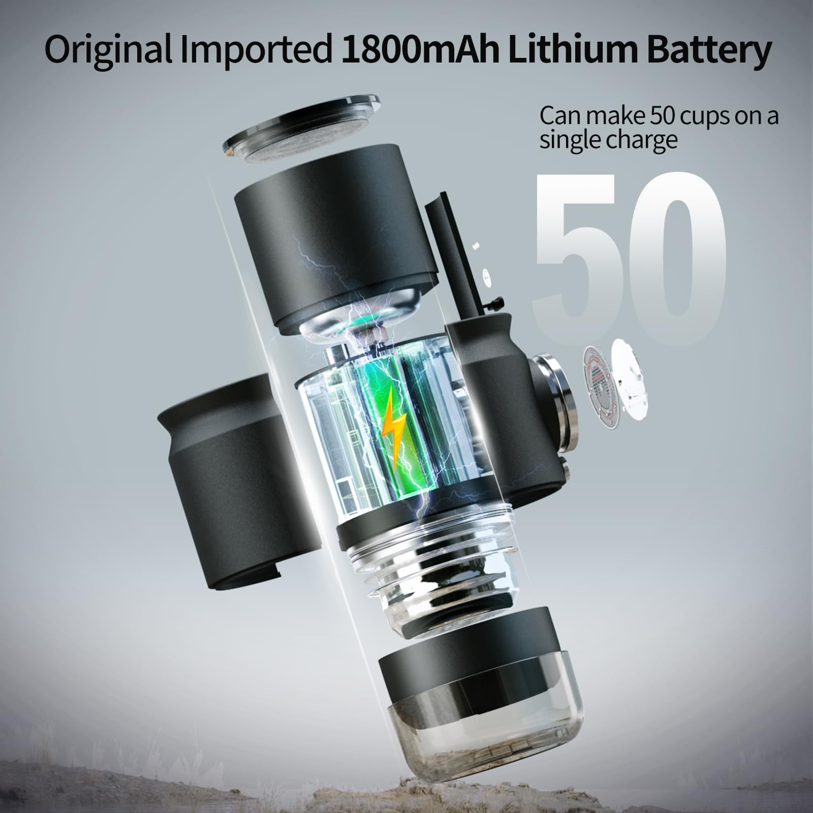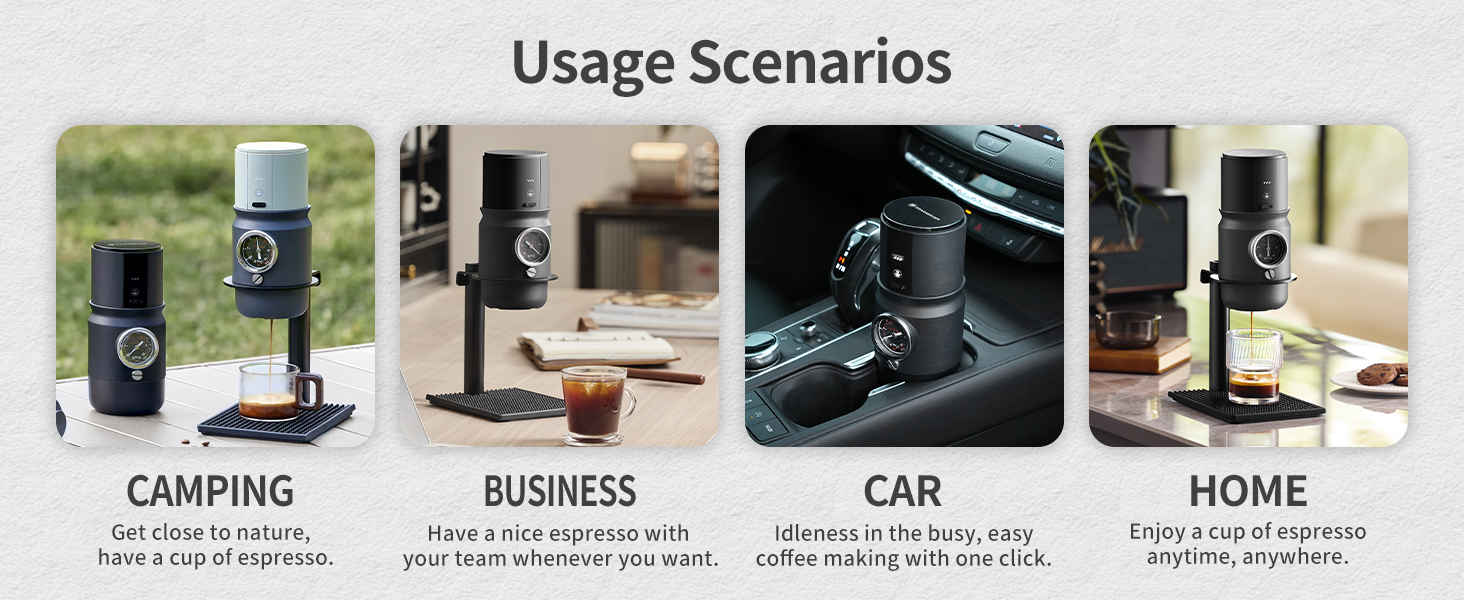 - Premium Battery Capacity: The travel espresso machine is equipped with 1800mAh battery, compatible with 10-15W USB-C car charger for universal charging, brews 50+ cups with hot water